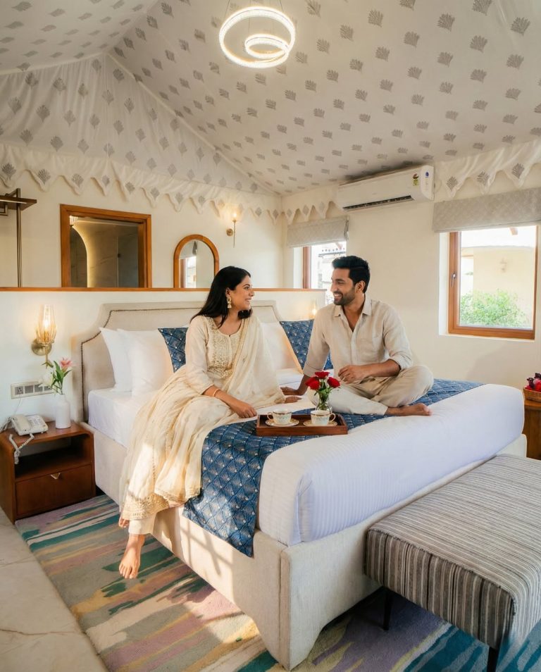 Among all Jaisalmer resorts, this palace feels different because it understands something simple yet profound: love needs more than luxury. It needs mood. It needs stillness. It needs a soul.