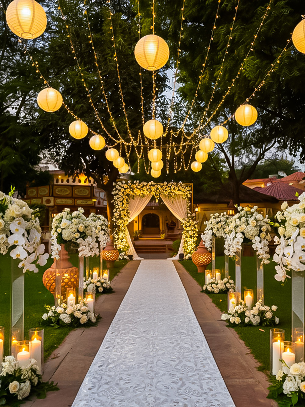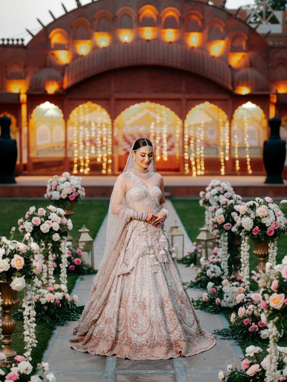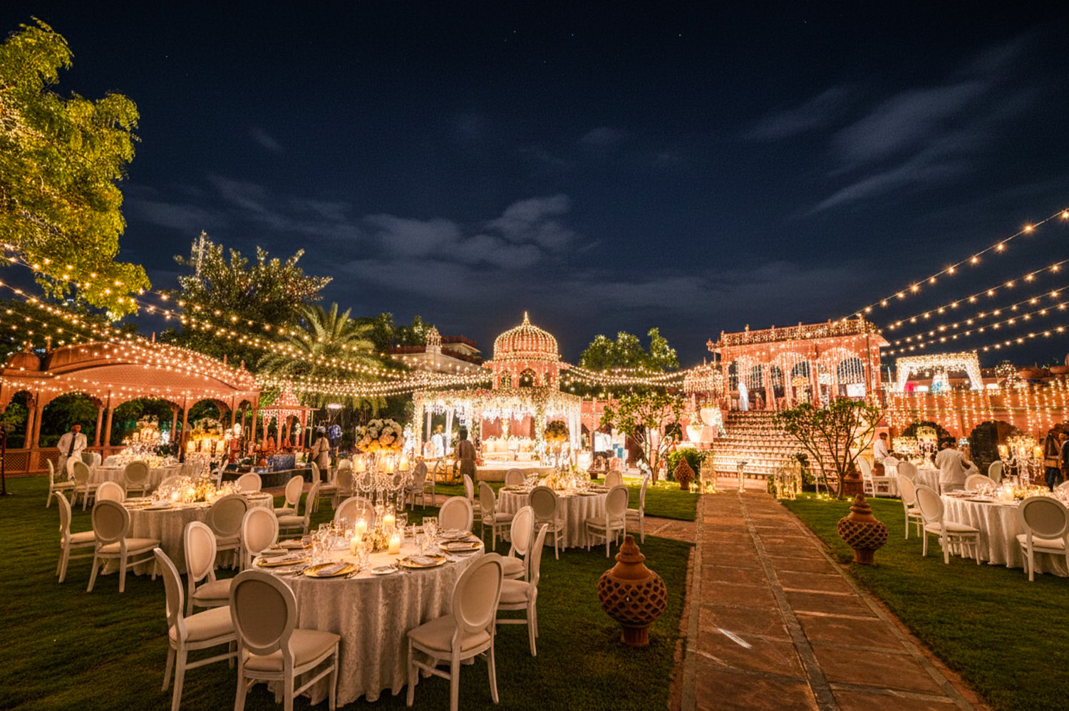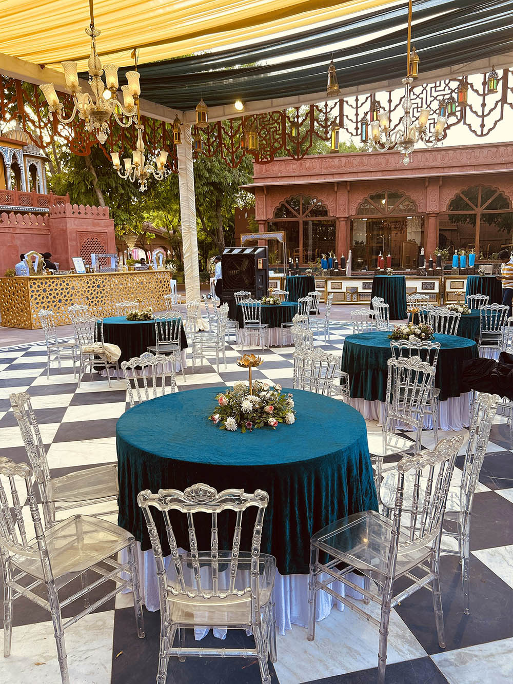 Resembling the architecture of Hawa Mahal, the “Hawa Mahal Lawn” can accommodate up to 150 guests. It is a perfect place to host small gatherings, haldi functions, and intimate weddings.