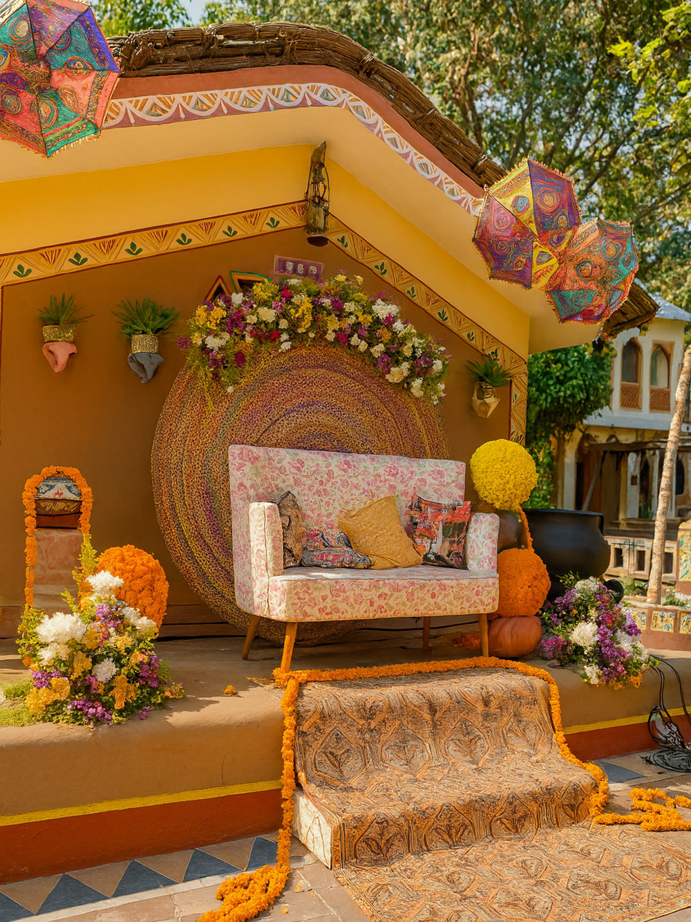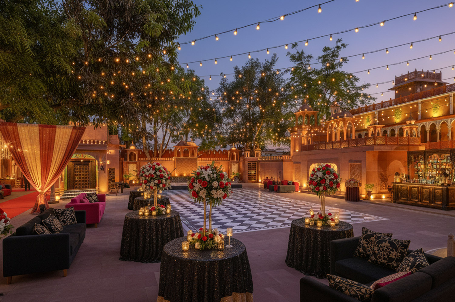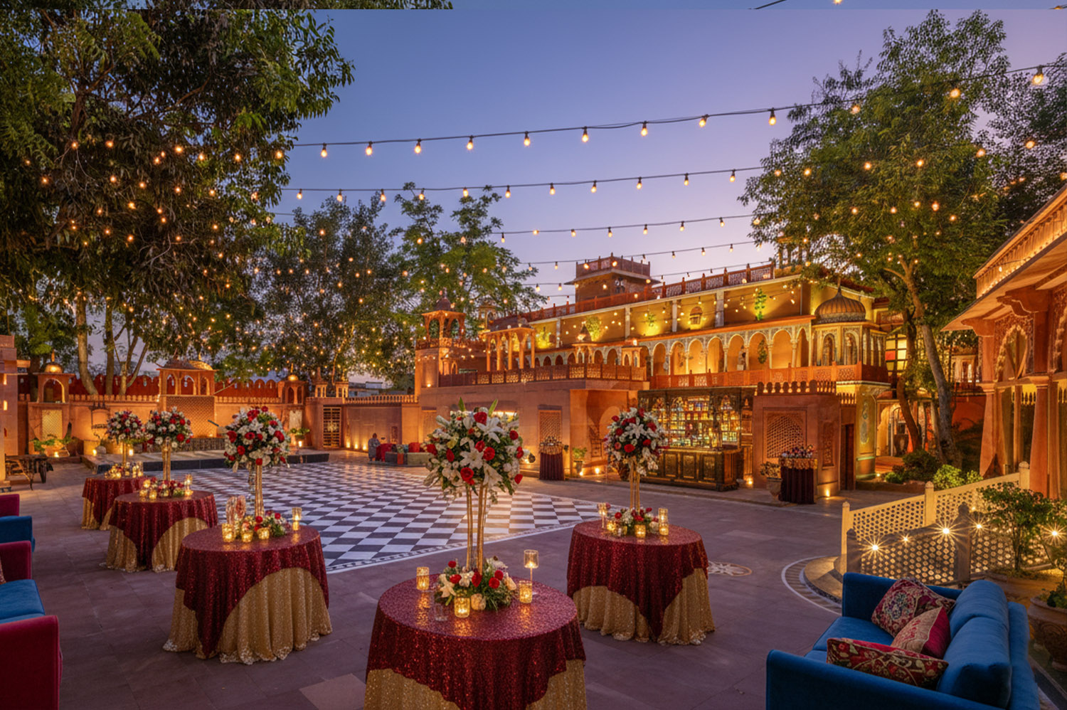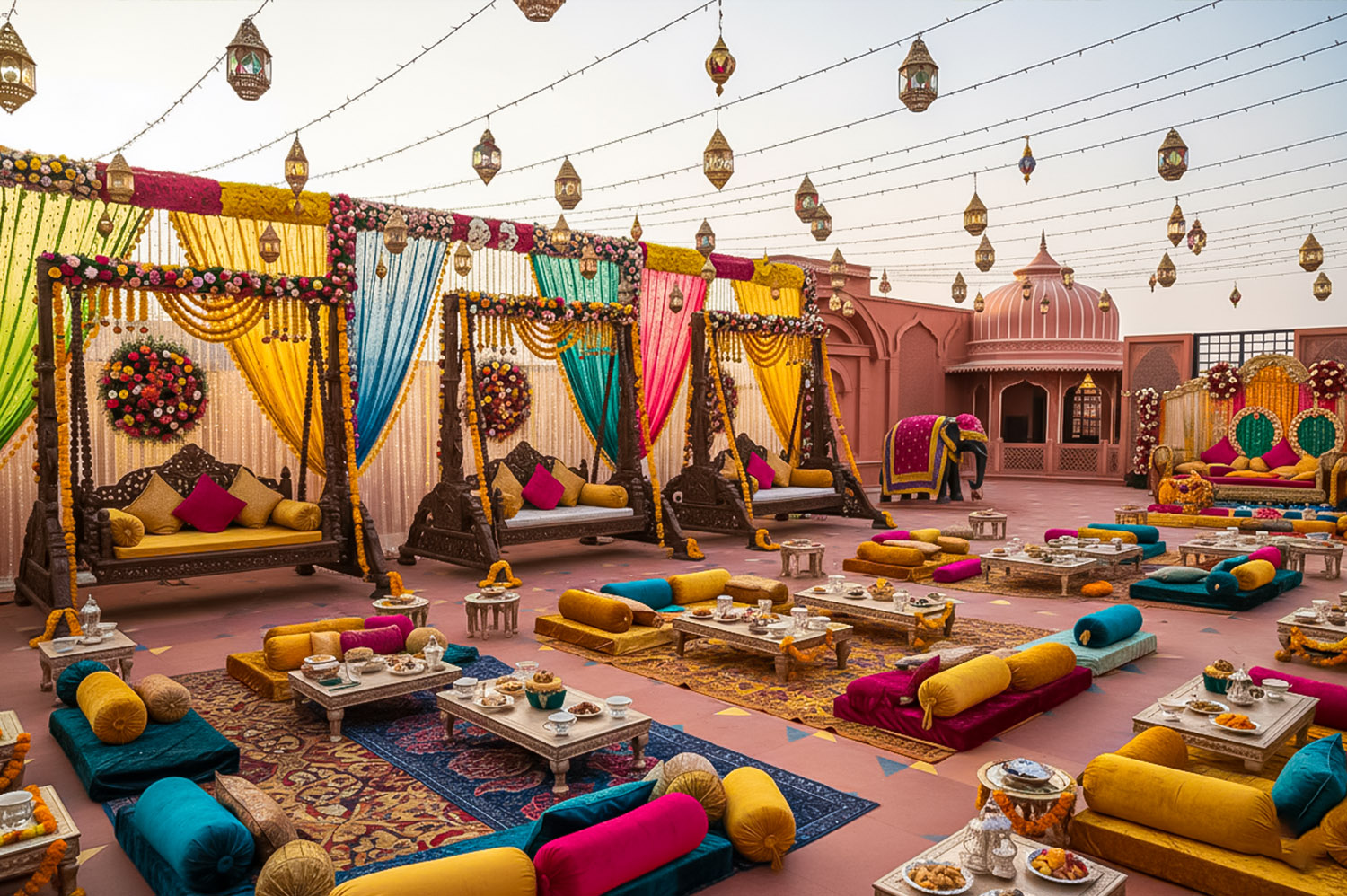 We provide you with a place filled with lush green flora, Rajasthani Mandana and designs, and so much more. If you are on the hunt for a Rajasthani Pre Wedding Place in Jaipur, book us now!