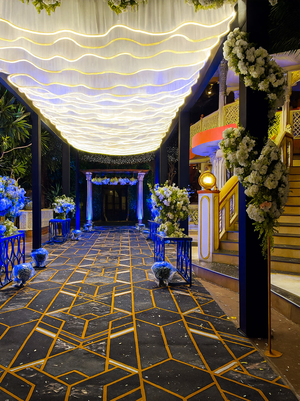 Surangi offers a heritage-themed setup with a unique checkboard-style floor, creating a grand ambiance. Perfect for wedding functions, cultural events, and celebrations, it comfortably accommodates up to 250 guests for an unforgettable experience.